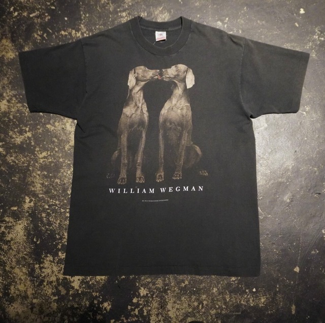 アメリカの写真家であり美術家のウィリアムウェグマン 自身の犬を被写体にしたデザインは複数パターンありますが個人的にはこのデザインが好きです アメリカ製 裾袖共にシングルステッチ サイズ表記L(肩幅50cm 身幅54cm 着丈69cm) 写真6枚目のように色抜けのような汚れあります 神経質な方はご遠慮ください 送料ですが日にち指定などがあれば宅急便コンパクト、なければネコポスをお選びください