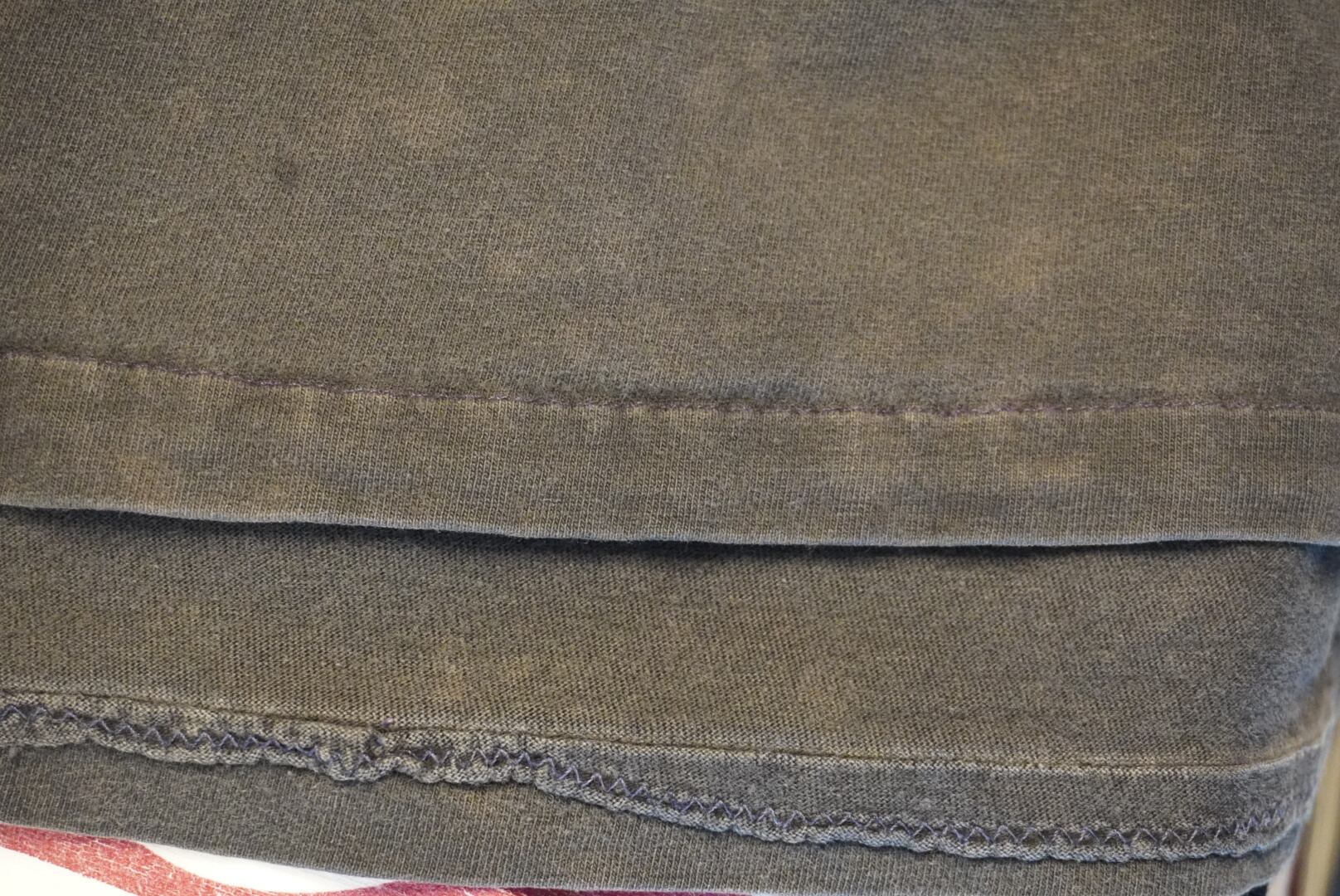 袖ダブルステッチの裾がシングルステッチで上げされてます
