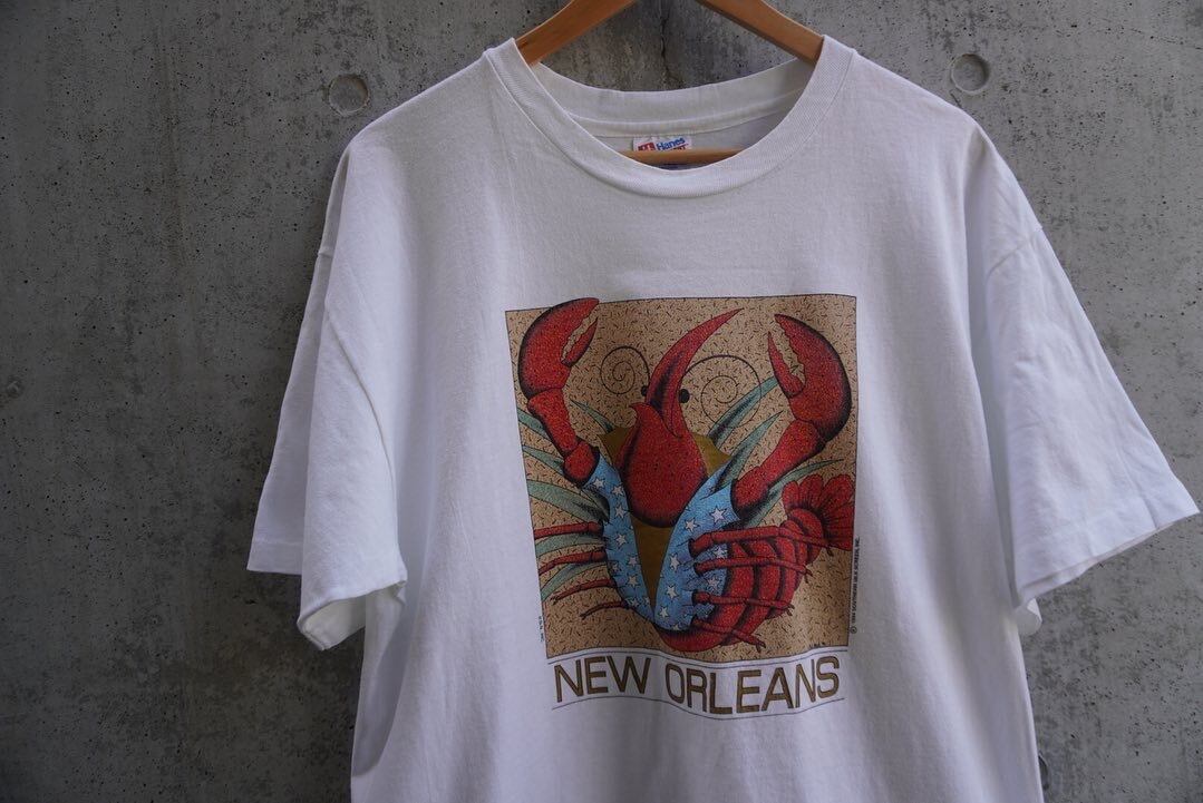ニューオーリンズ名物食品のザリガニデザインのアートタッチなTシャツ