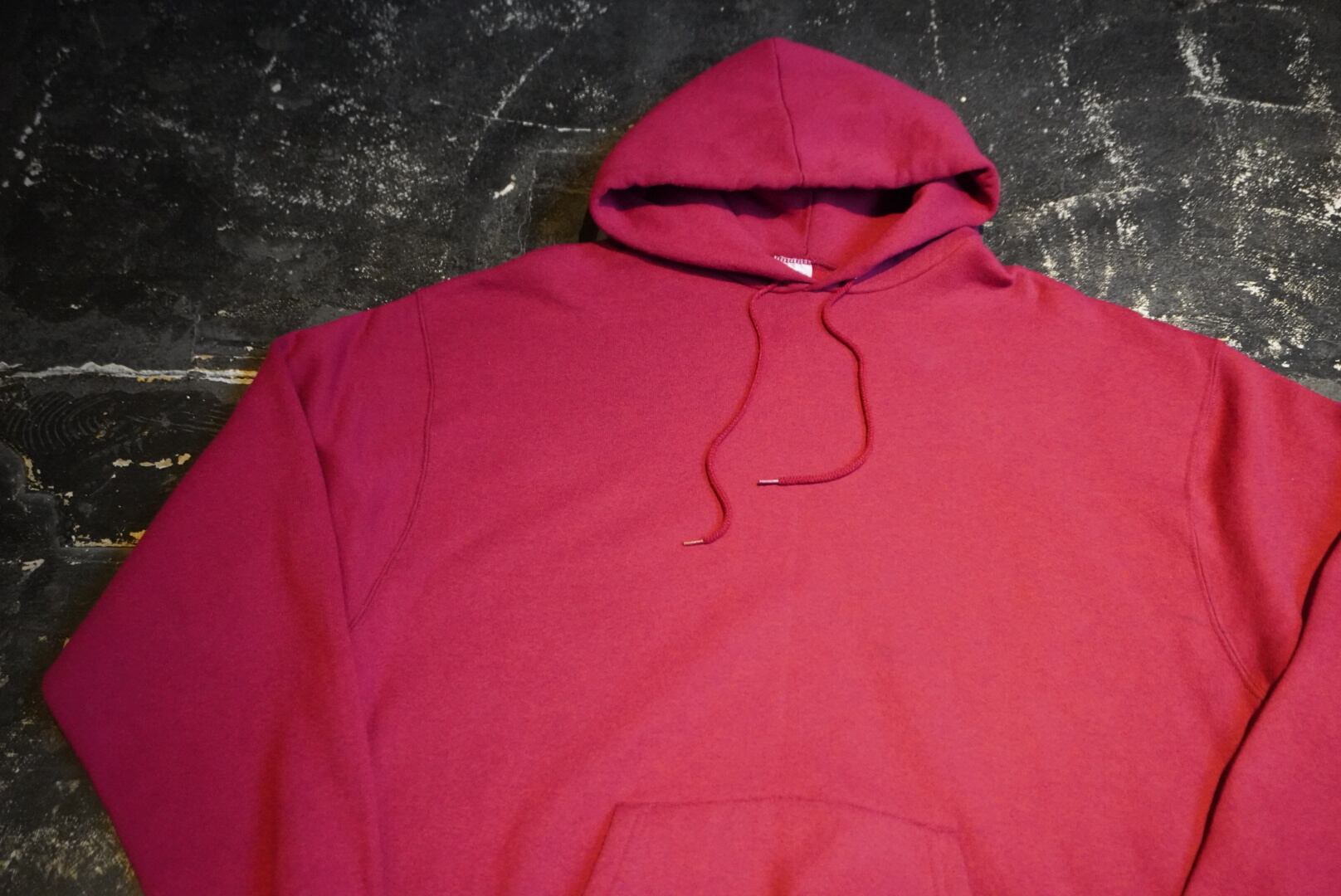 えんじ色のスウェットパーカー