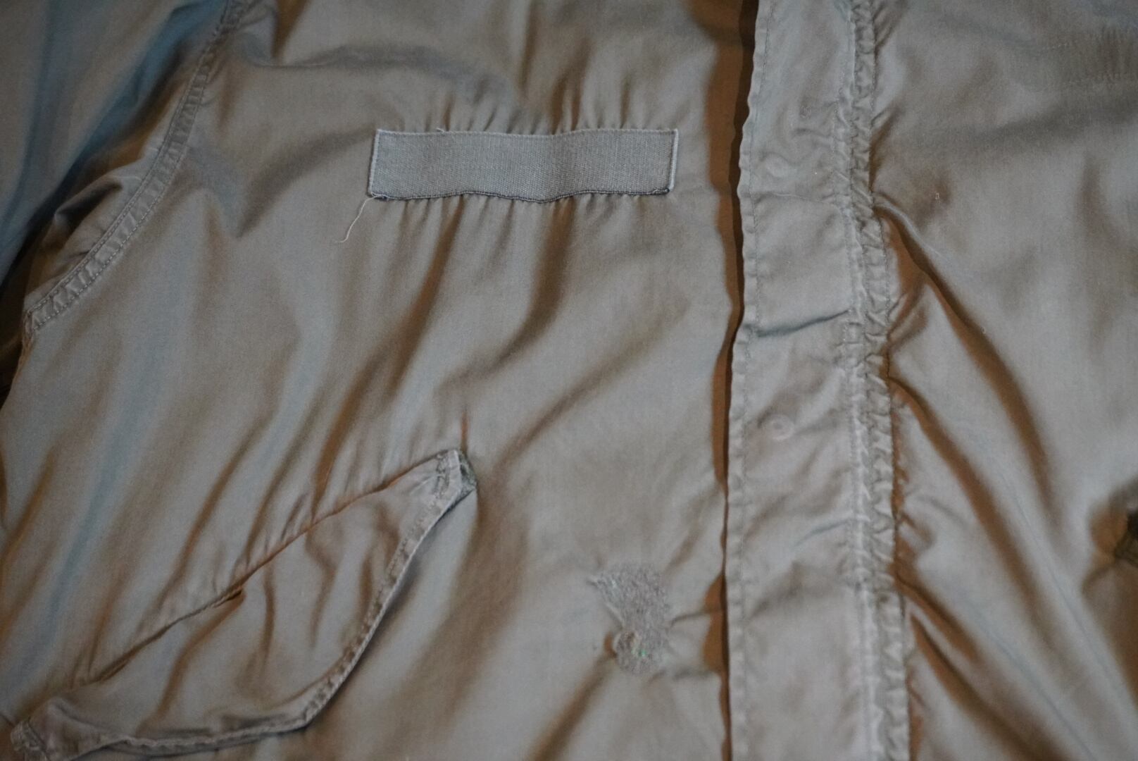 写真6枚目のようにワッペンの取れた跡が左胸、左肩にあります