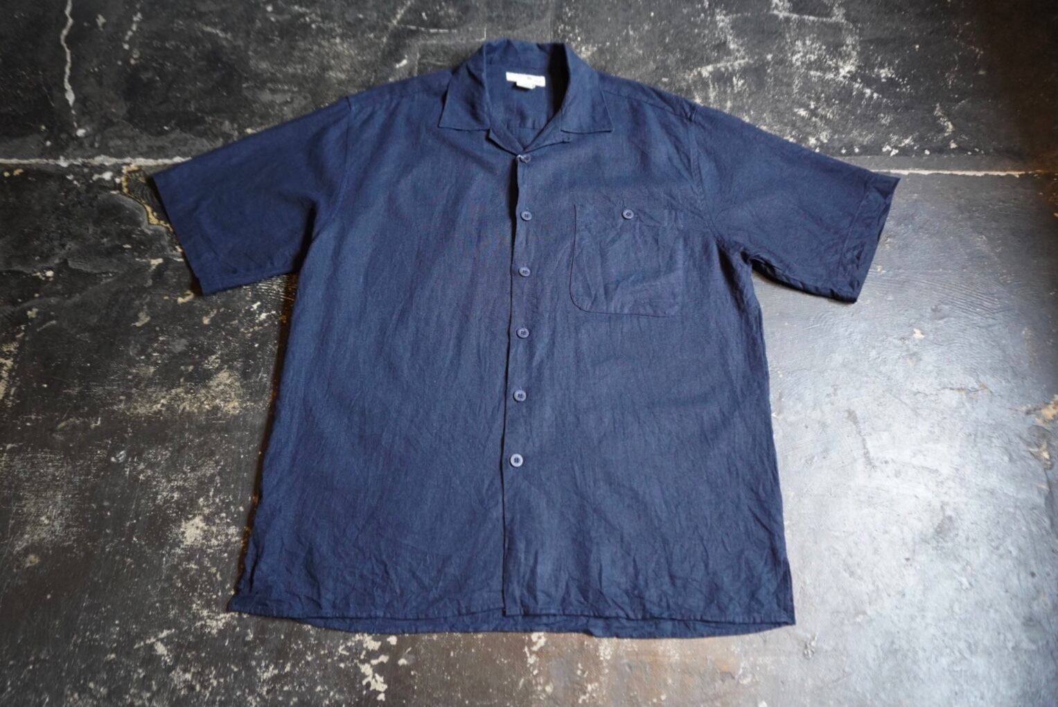 ネイビーで無地のオープンカラーシャツ
