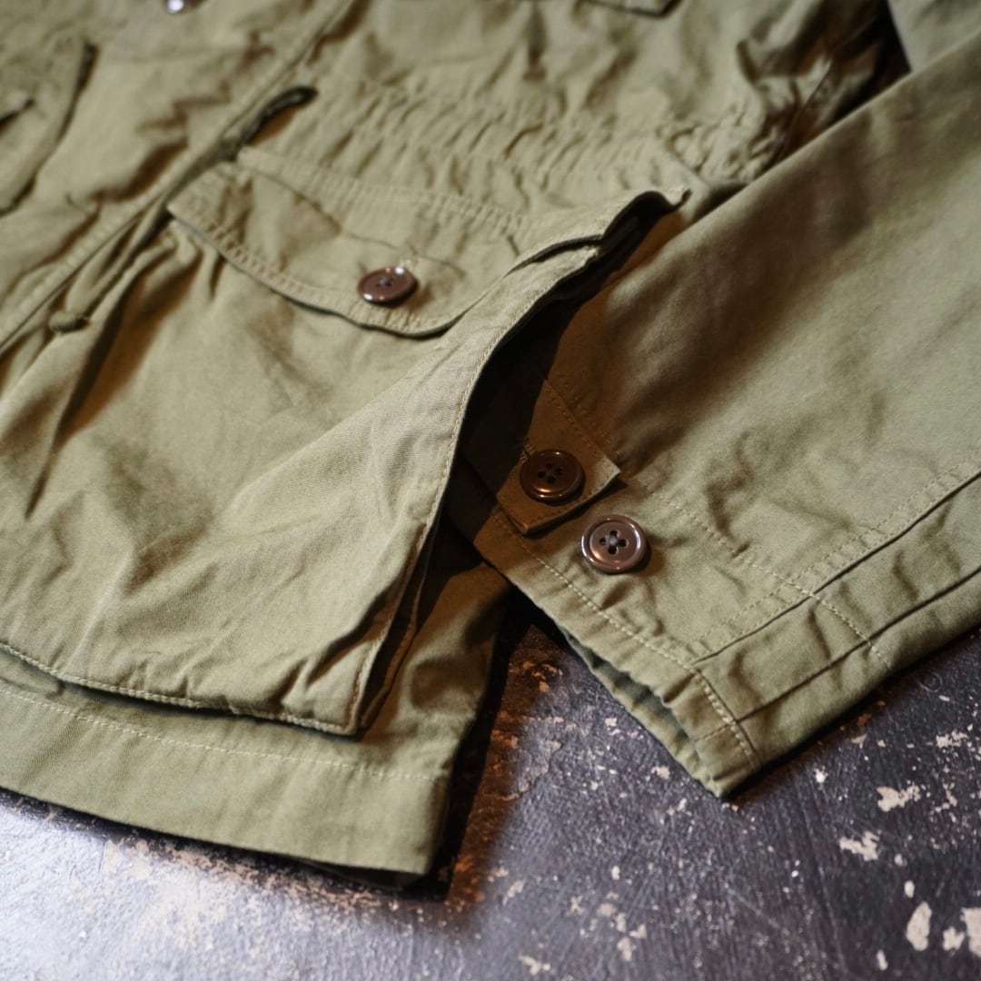 襟元のボタンや写真6枚目のように横からも入るポケットなどミリタリー感は残しながらもファッショナブルに、実用的に作られてます