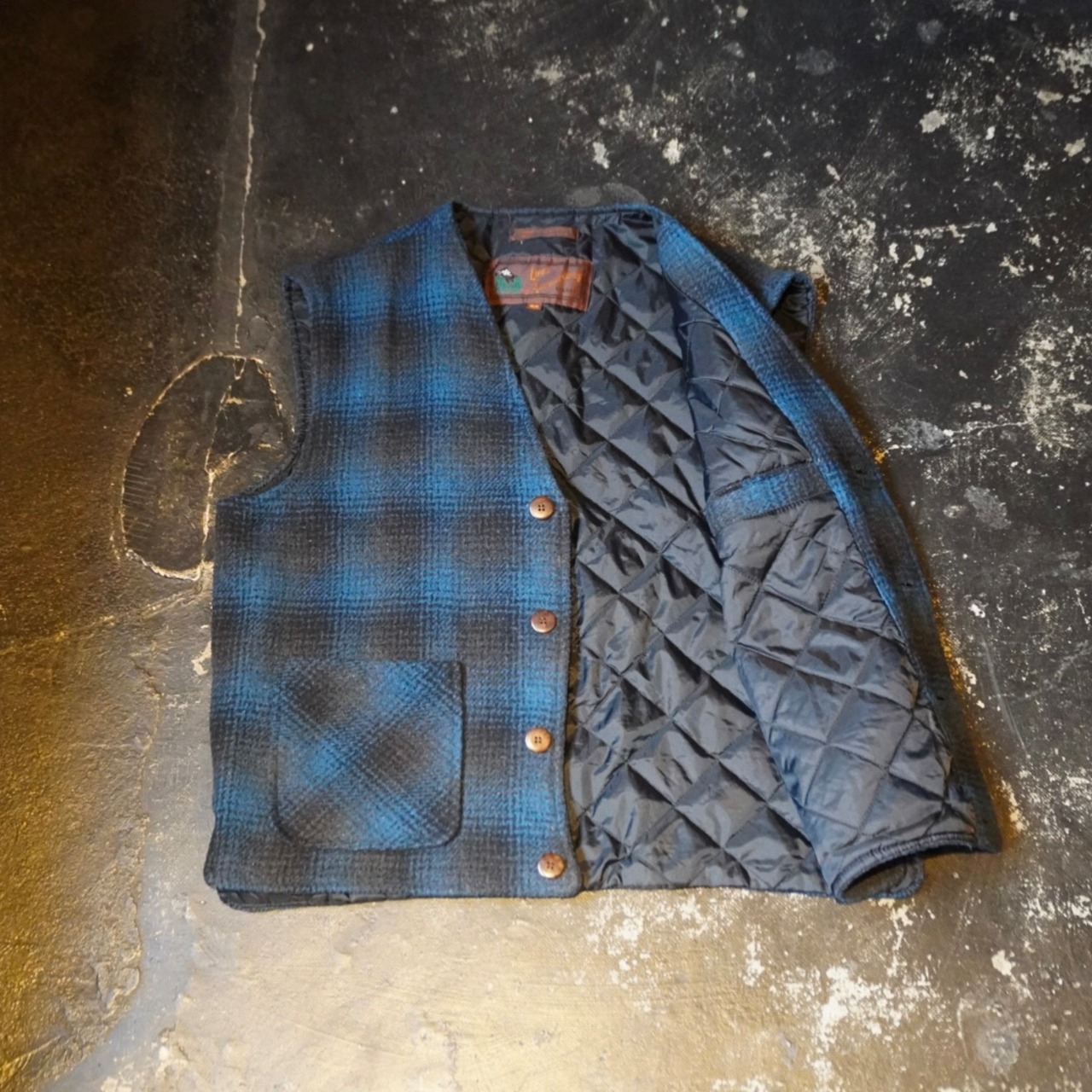 青黒のオンブレチェックベスト